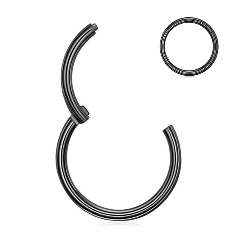 Ldurian Hypoallergenic Nose Ring Hoops - 14G 8mm Black Plated 316L Surgical Steel Septum Cartilage Ring - Body Piercing Lip Rings Jewelry
