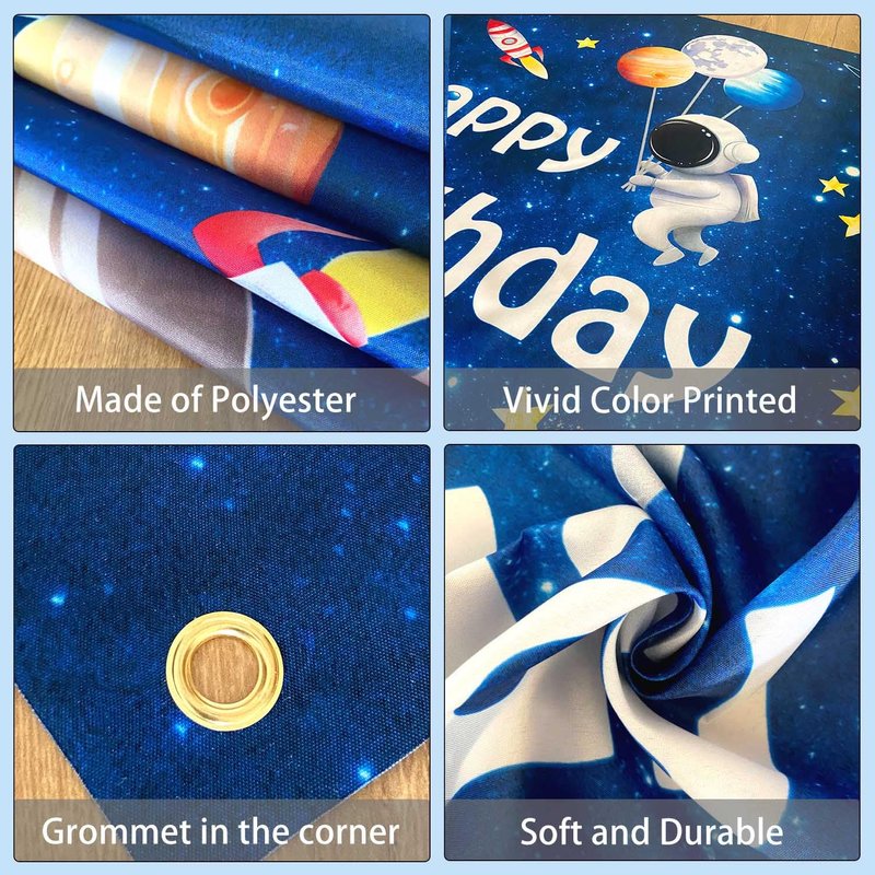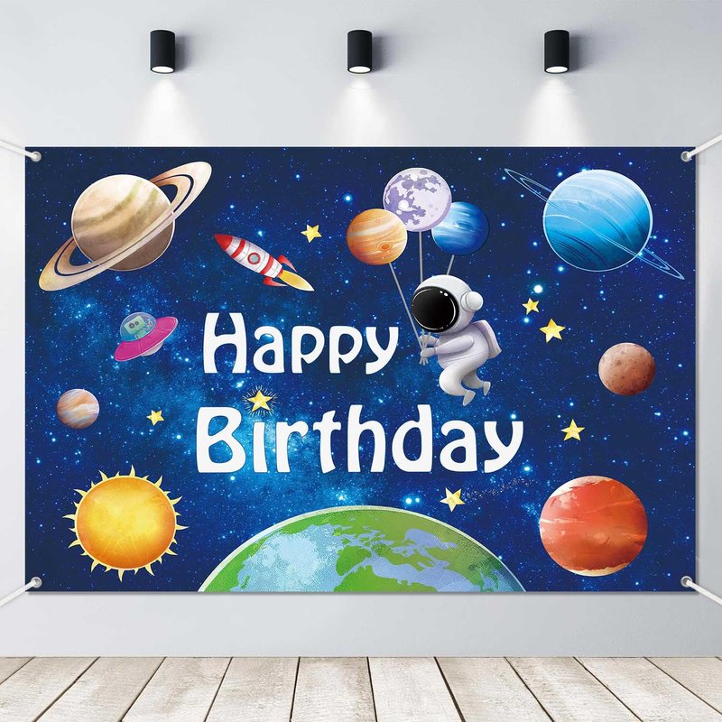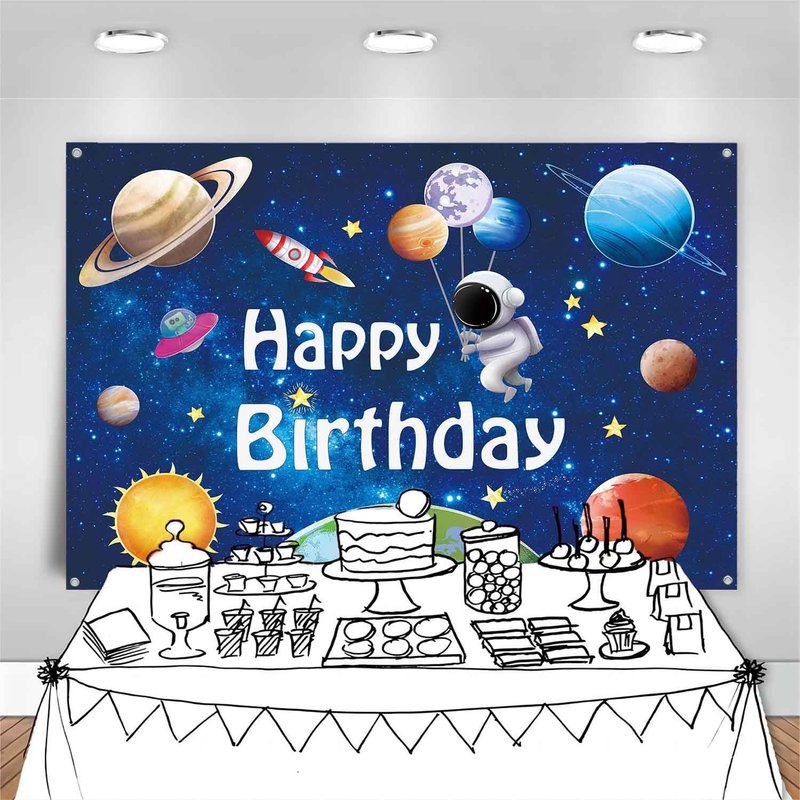 - 【Packing Includes】A piece of space theme backdrop, the size is about 59x39in. There are four grommets in the four corners of the backdrop for hanging. The package only includes happy birthday backdrop, without stand and string.