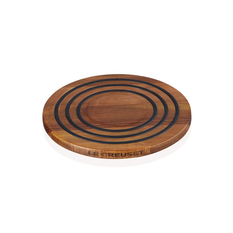 Le Creuset Magnetic Wooden Trivet, Acacia Wood with Black Silicone Rings