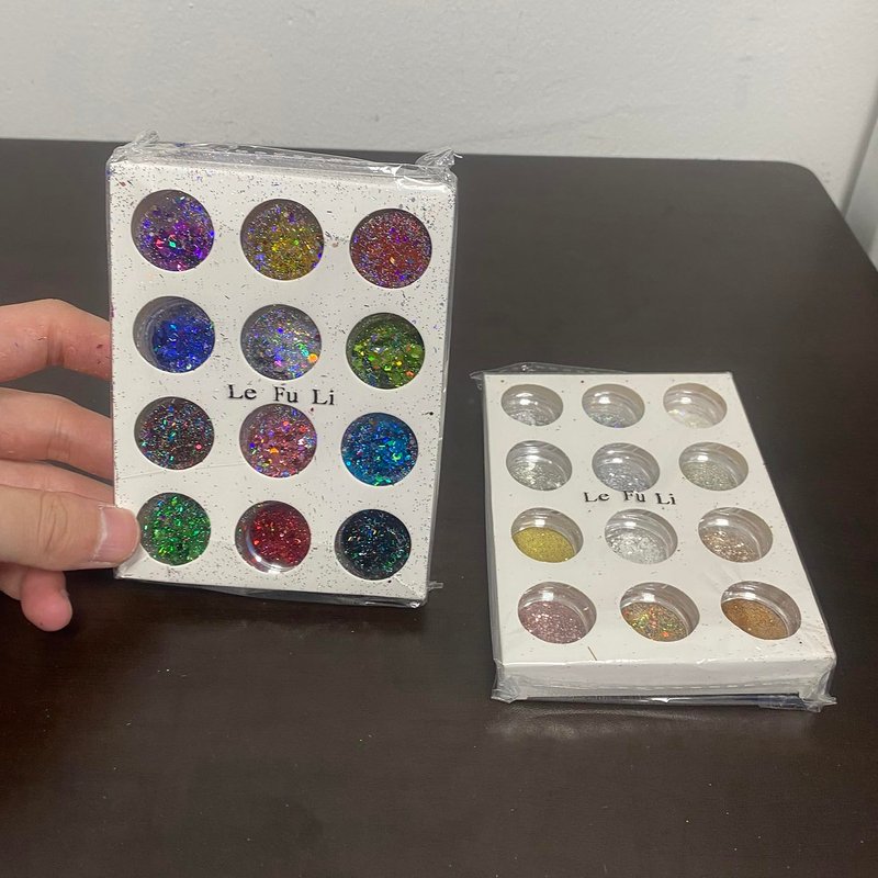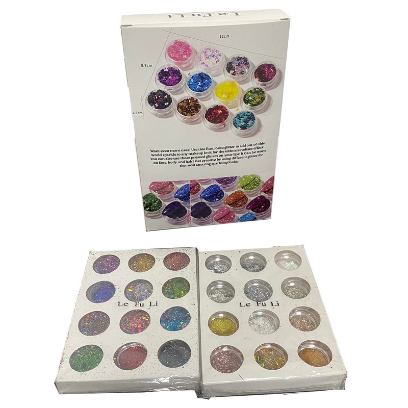 - The glitter sequins set contains 48 boxes with different colors and shapes. 12 boxes loose mixes glitter powder in 12 colors,12 boxes of small sequins of the same size, 12 boxes multitude of shapes and sizes of chunky glitter. 12 boxes of small sequins of the butterfly size, These versatile little boxes of magic have so many uses and will amaze you with how sparkly it is!