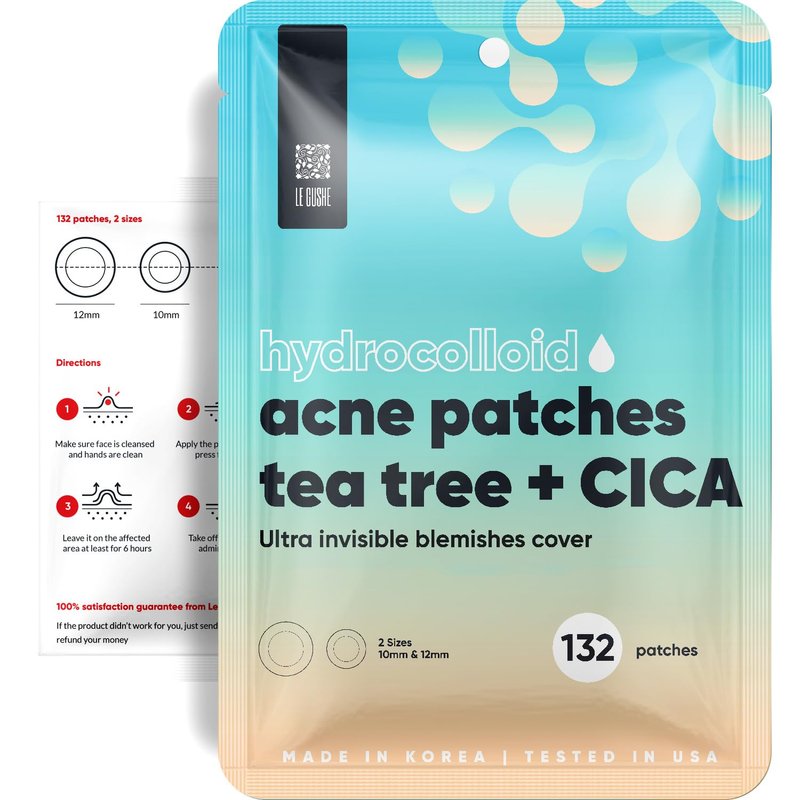 LE GUSHE K-BEAUTY Pimple Patches for Face (132 dots) - Hydrocolloid Acne Patch for Zits and Blemishes - Invisible Blemish Patches | Spot Cover Stickers for Glowing Skin | Korean Skin Care
