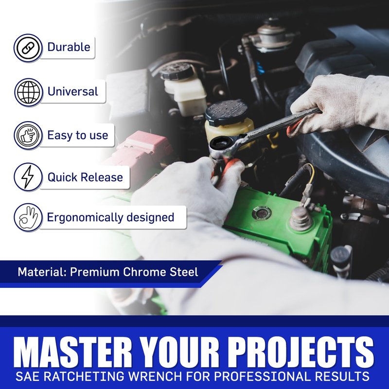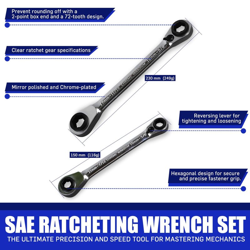 - 𝗗𝘂𝗿𝗮𝗯𝗹𝗲 𝗖𝗼𝗻𝘀𝘁𝗿𝘂𝗰𝘁𝗶𝗼𝗻 𝗳𝗼𝗿 𝗟𝗼𝗻𝗴𝗲𝘃𝗶𝘁𝘆: Crafted from heat-treated chrome steel, the double ratcheting wrench set is built to last. The 12-point box end prevents bolt rounding, ensuring these tools remain a vital part of your kit for years.