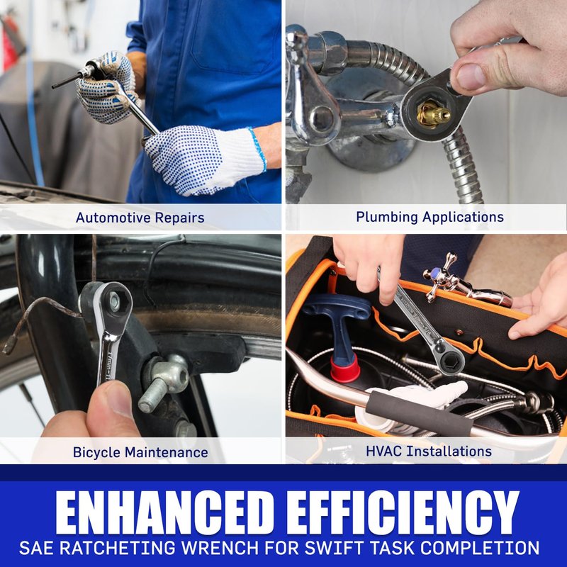 - 𝗥𝗲𝘃𝗲𝗿𝘀𝗶𝗯𝗹𝗲 𝗮𝗻𝗱 𝗤𝘂𝗶𝗰𝗸 𝗖𝗵𝗮𝗻𝗴𝗲 𝗙𝘂𝗻𝗰𝘁𝗶𝗼𝗻𝗮𝗹𝗶𝘁𝘆: Featuring reversible ratcheting wrenches with a quick-change mechanism, this set offers unmatched convenience for fast direction changes and adjustments, making it perfect for working in tight spaces.
