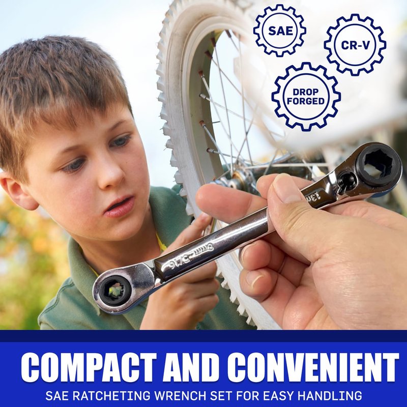 - 𝗠𝘂𝗹𝘁𝗶-𝗙𝘂𝗻𝗰𝘁𝗶𝗼𝗻𝗮𝗹 𝗧𝗼𝗼𝗹 𝗳𝗼𝗿 𝗗𝗶𝘃𝗲𝗿𝘀𝗲 𝗡𝗲𝗲𝗱𝘀: This set not only serves as a small ratcheting wrench set but also includes features of a 4 in 1 box wrench and a quad drive ratcheting wrench, offering versatility across a wide range of tasks from quick bike adjustments to complex industrial work.