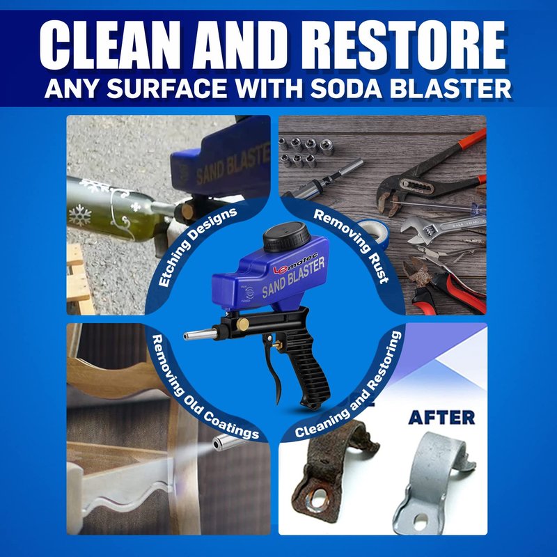 - 𝗛𝗔𝗡𝗗𝗛𝗘𝗟𝗗 𝗔𝗡𝗗 𝗩𝗘𝗥𝗦𝗔𝗧𝗜𝗟𝗘 𝗦𝗔𝗡𝗗 𝗕𝗟𝗔𝗦𝗧𝗘𝗥: Turn your trash into treasure with Lematec's sandblaster kit. Our amazing media blaster kit supports unlimited media types making it a versatile tool for any home or shop - use it for removing rust and corrosion, cleaning metal parts, etching glass, or for preparing surfaces for painting or coating.