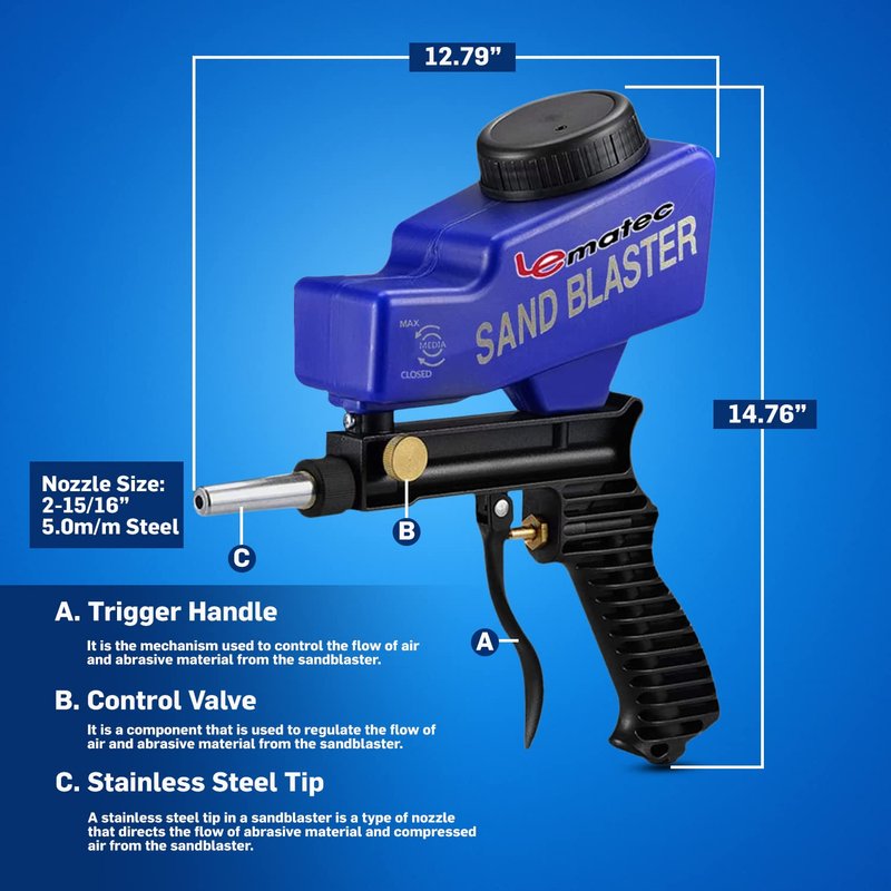 - 𝗗𝗨𝗥𝗔𝗕𝗟𝗘 𝗦𝗔𝗡𝗗 𝗕𝗟𝗔𝗦𝗧𝗜𝗡𝗚 𝗧𝗢𝗢𝗟: Get ready to tackle tough cleaning, surface preparation, and restoration tasks. Lematec's sand blasters are made with high-quality materials designed to provide professional-grade performance, making them a must-have tool for any DIY enthusiast, hobbyist, or professional.