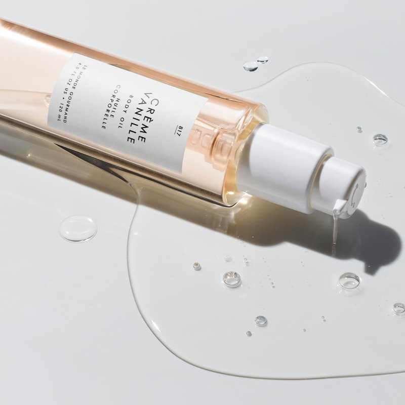 - We’ve taken our beloved Crème Vanille scent and transformed it into an ultra rich body oil that transforms skin from parched to parfait. Quick to absorb, Apricot and Sweet Almond Oils nourish skin, while vegetable derived vitamin E and antioxidants help retain the appearance of pampered skin. This can be used as a nourishing bath oil, a gentle body cleanser in the shower or massaged into the skin for maximum hydration and glow.