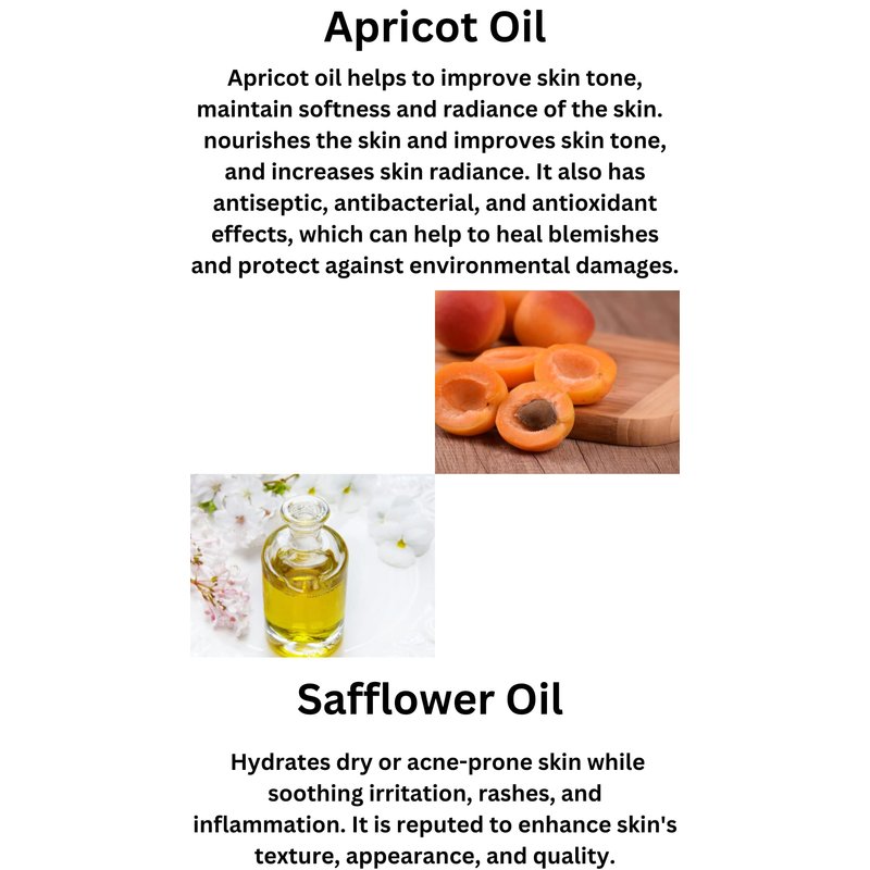- Ingredients - Organic Apricot Oil, Safflower Oil, and Fragrance Oil.