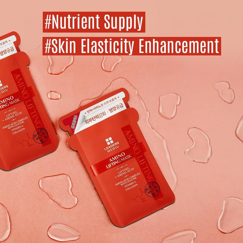 Leaders Mediu Amino Firming & Lifting Facial Sheet Mask | Amino Acid Complex, Vitamin A, Collagen | Reduces Fine Lines, Improves Elasticity, for All Skin Types (5 Sheets)
