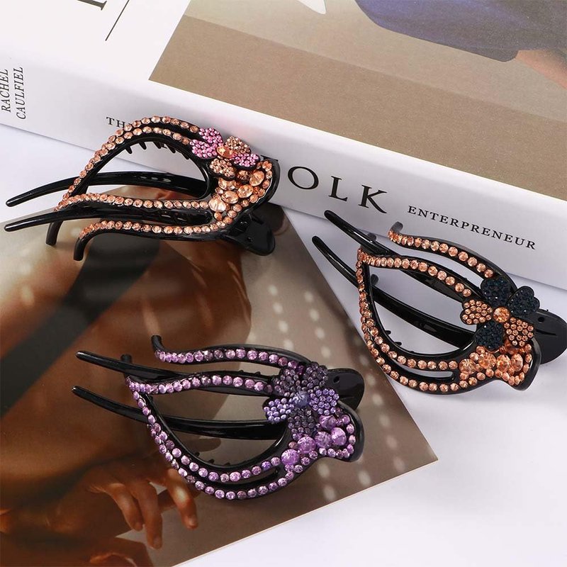 - [Fashionable Design] The heart-shaped duckbill clip is made of beautiful peach heart appearance and rhinestone flower combination, wearing the heart-shaped duckbill clip makes you look more elegant and charming