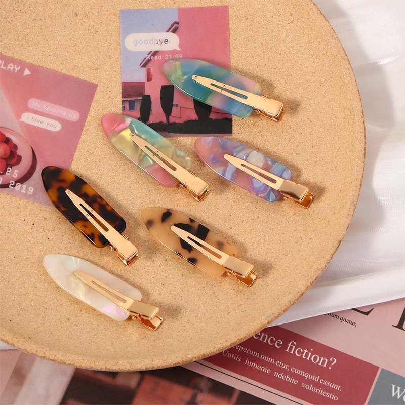 - These hair clips are made of high-quality Acetate sheet that will not fade or discolor. These hair clips easily hold back flyaway hair and bangs while applying makeup. Hold hair securely while avoiding traces, creases, or bends.