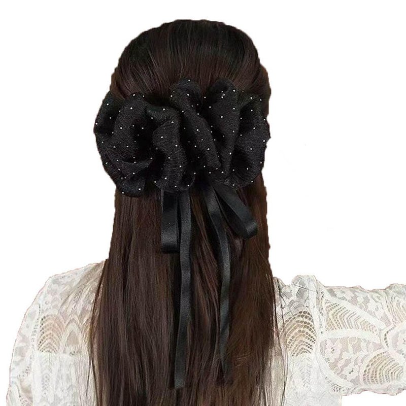Leadigol Ponytail Clip Headdress Hair Accessories Spring Clamps Dots Mesh Ribbon Vintage Hair Clips for Women
