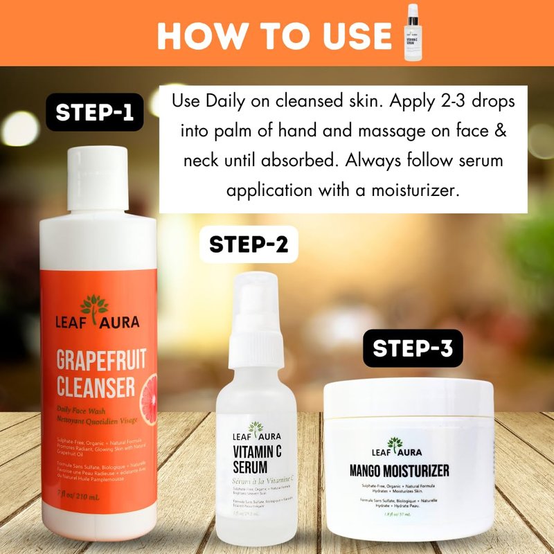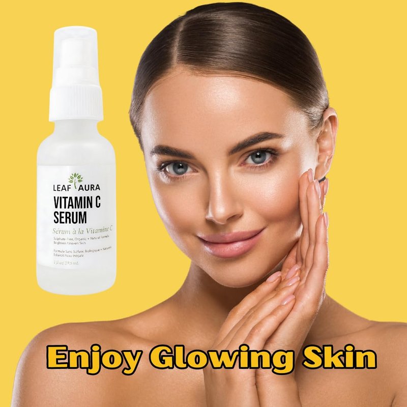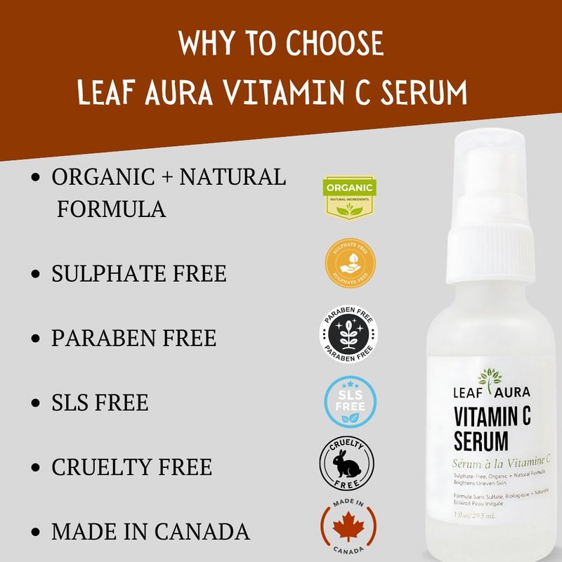 Leaf Aura Vitamin C Serum, Sulphate-Free, Organic+ Natural Formula, Brightens Uneven Skin, Made In Canada, 29.5ml