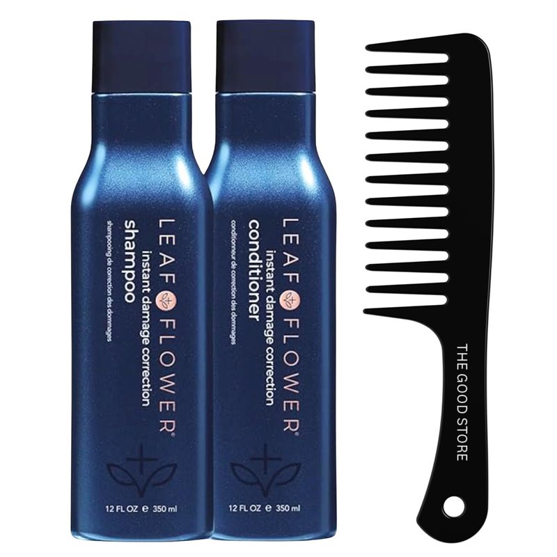 Leaf Flower Instant Damage Correction Shampoo & Conditioner 12 oz Duo, Blue | The Good Store Black Hair Comb