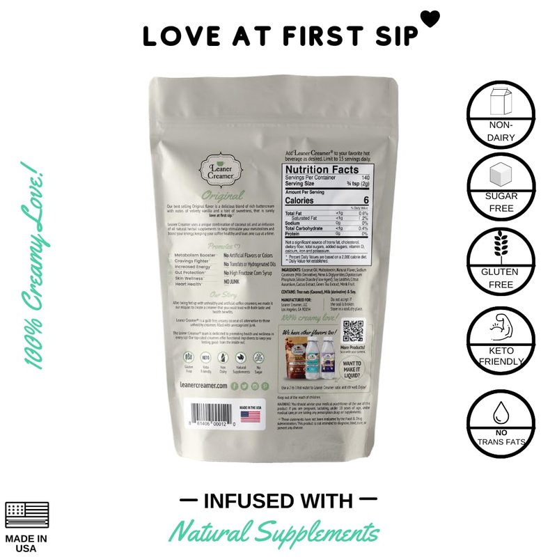 Leaner Creamer: Natural Coconut Oil Based Coffee Creamer - Original (280 Refill Pouch)