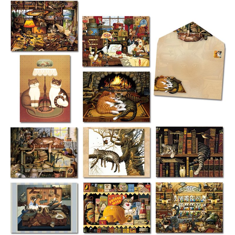 - Leanin' Tree Blank Greeting Card Assortment: These cat-themed blank note cards are filled with illustrations of playful felines and are perfect for cat lovers young and old