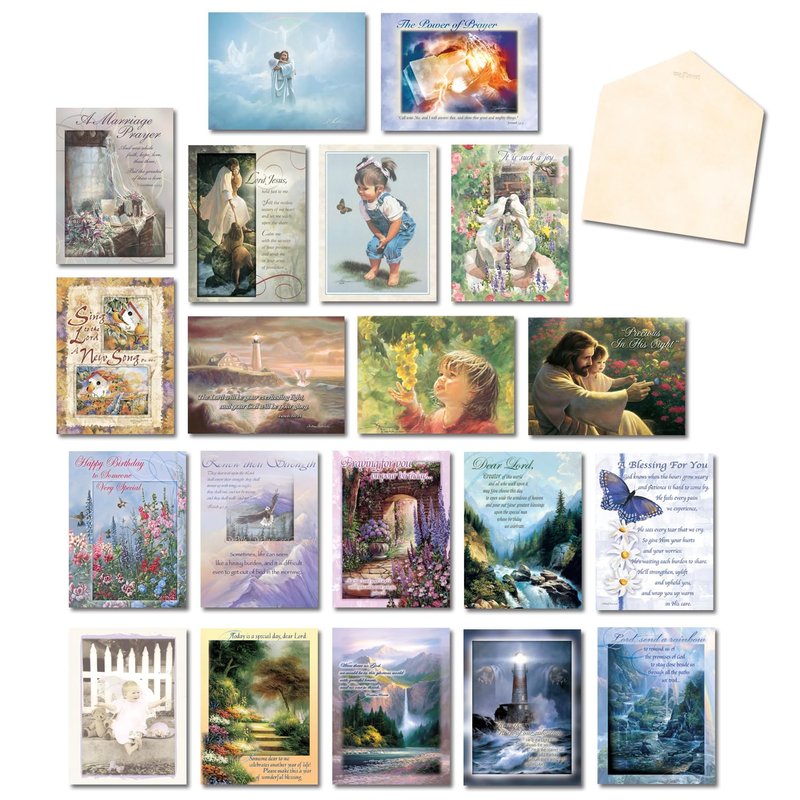 Leanin' Tree Thoughts and Prayers Greeting Cards Assortment Box - 20 Christian Thank You Cards with Envelopes, Birthday Cards, Religious Greeting Cards with Scripture - 22 Envelopes Included