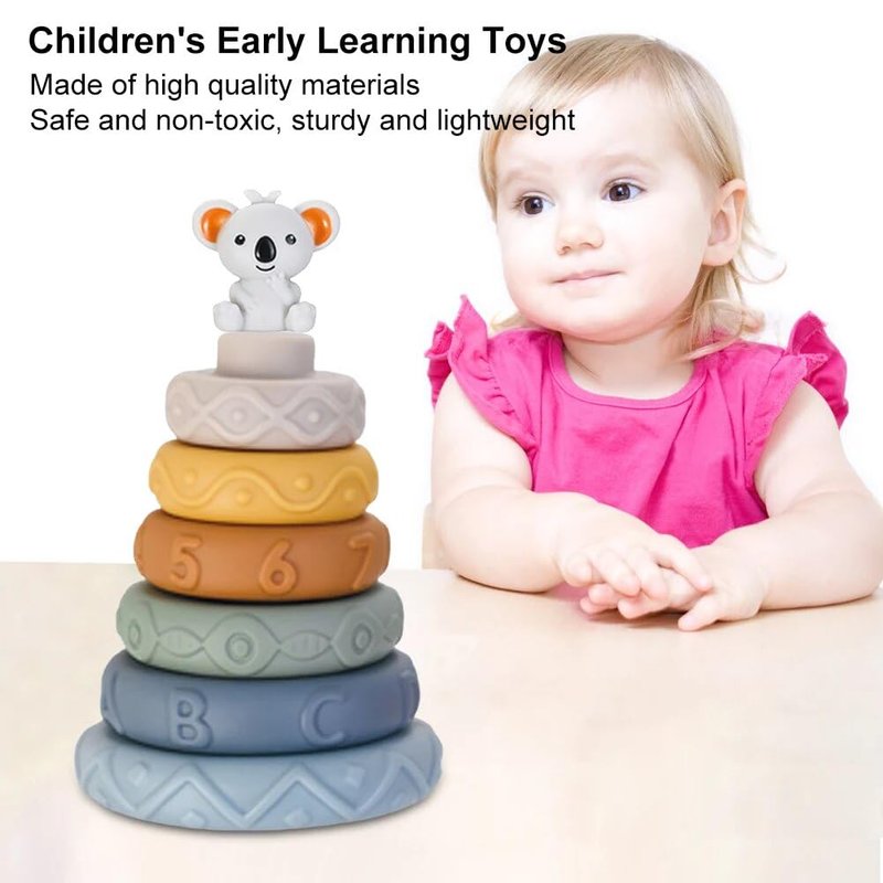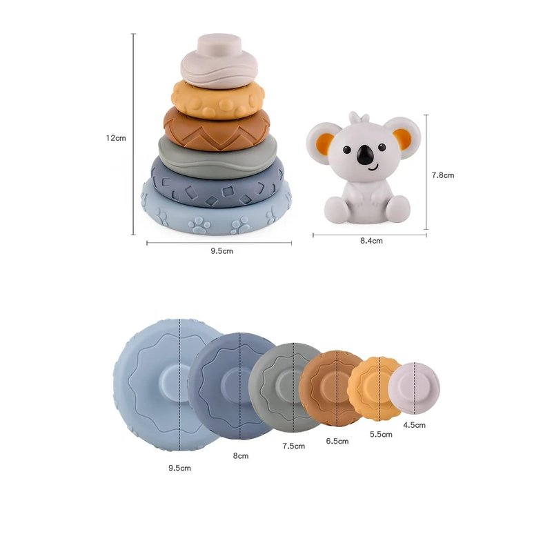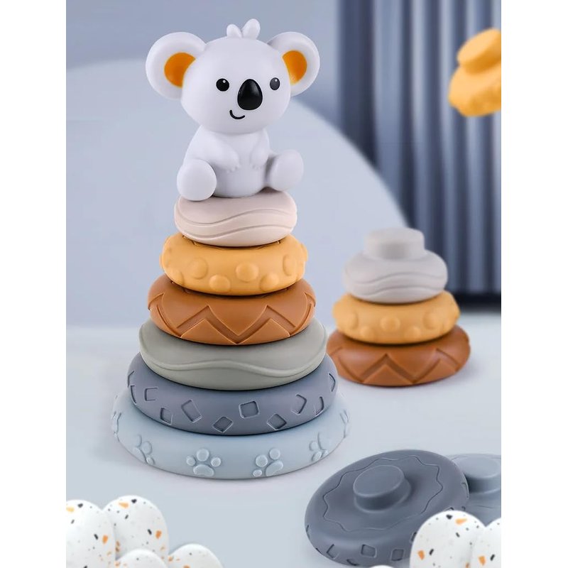 Learn It Bro Soft Silicone Building Blocks Montessori Toy for 6+ Months Baby (Grey Koala)