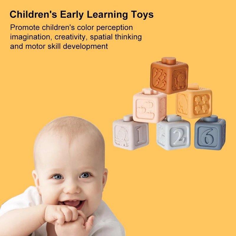 - Stacking toys cube are incredibly soft, helping soothe your baby's teething discomfort. They can be chewed on, stacked, and squeezed.