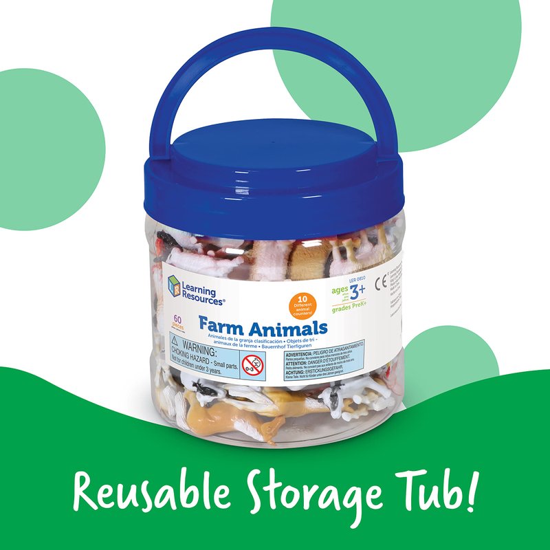 Learning Resources Farm Animal Counters - 60 Pieces, Ages 3+ Toddler Learning Toys, Farm Animals Toys, Develops Counting and Matching Skills