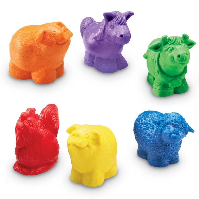 - Set of 30 includes 5 animals (cow, horse, rooster, pig, and sheep) in 6 colors