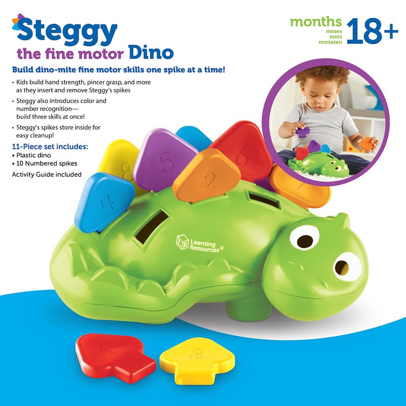 - PINCHABLE, PULLABLE SCALES: Boost pincer grasp, hand strength, and more with Steggy's 10 pinchable, pullable scales. Use Learning Resources Kids Tweezers for even more fun (sold separately).