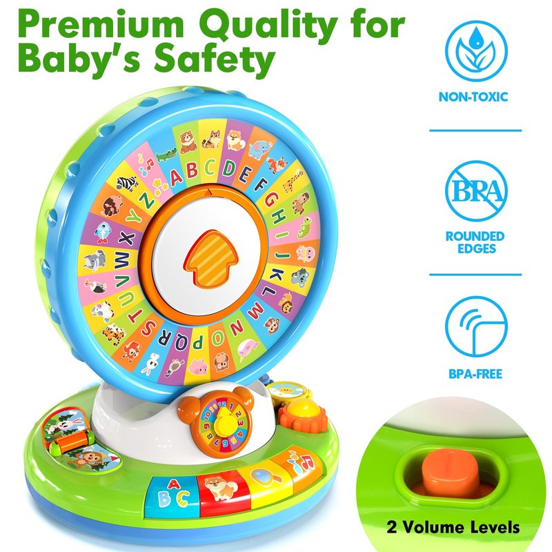 - Safe and Durable Materials: Crafted from BPA-free ABS plastic with smooth edges, this toddler toy is safe for your child's delicate skin. The volume control feature ensures a pleasant auditory experience, protecting your toddler’s hearing while they explore and learn.