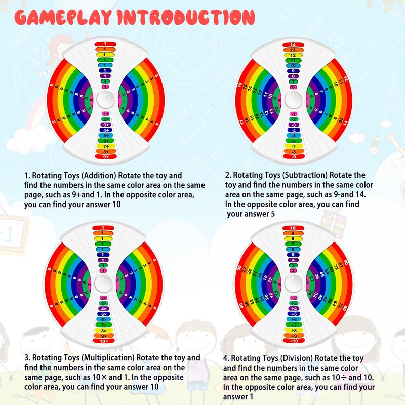 - Portable & Convenient: Our math facts fidget spinners has a compact structure, light weight, and small quantity, making it easy to carry wherever you are. Whether in the classroom, at home, or on a long-distance bus, these Math Fact Fidget Spinners provide a portable solution for practicing mathematical facts on the go. The rainbow tone design not only enhances the visual appeal of the product, but also improves children's attention, thinking ability, logic, eye hand coordination, color recognition ability, and stimulates their interest in learning.