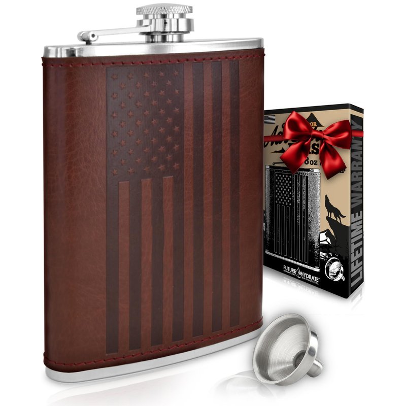 - Quality: Our Classic American Flag Outdoor Adventure Flasks, leather-wrapped for a stylish and durable finish, are built strong for the outdoors. Manufactured from heavy-duty, Premium Food Grade 304 Stainless Steel, they are rust-resistant, leak-proof, and ideal for various adventures. The faux leather exterior ensures no harm to animals in production.