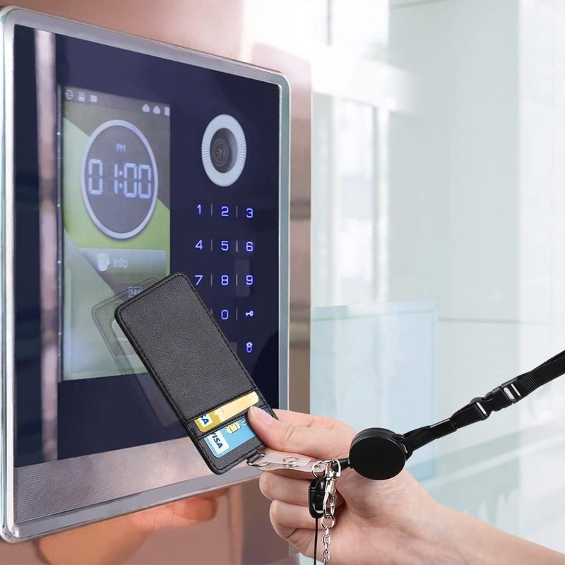 - [PACKAGES]: 1 pack PU leather badge holders with credit card slots, 1 pack retractable badge lanyards (19.8" strap length) with accessories.