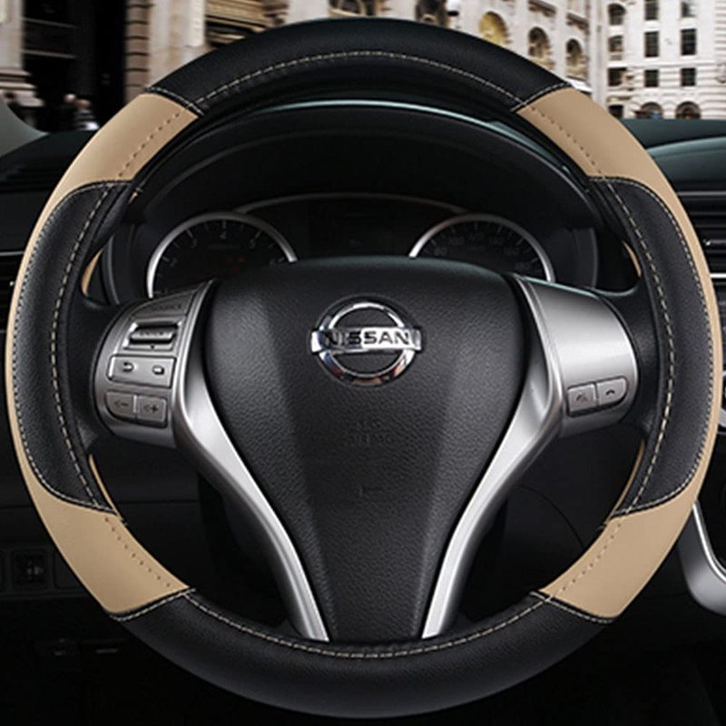 Leather Car Steering Wheel Cover, Non-Slip Car Wheel Cover Protector Breathable Microfiber Leather Universal Fit for Most Cars(Beige)