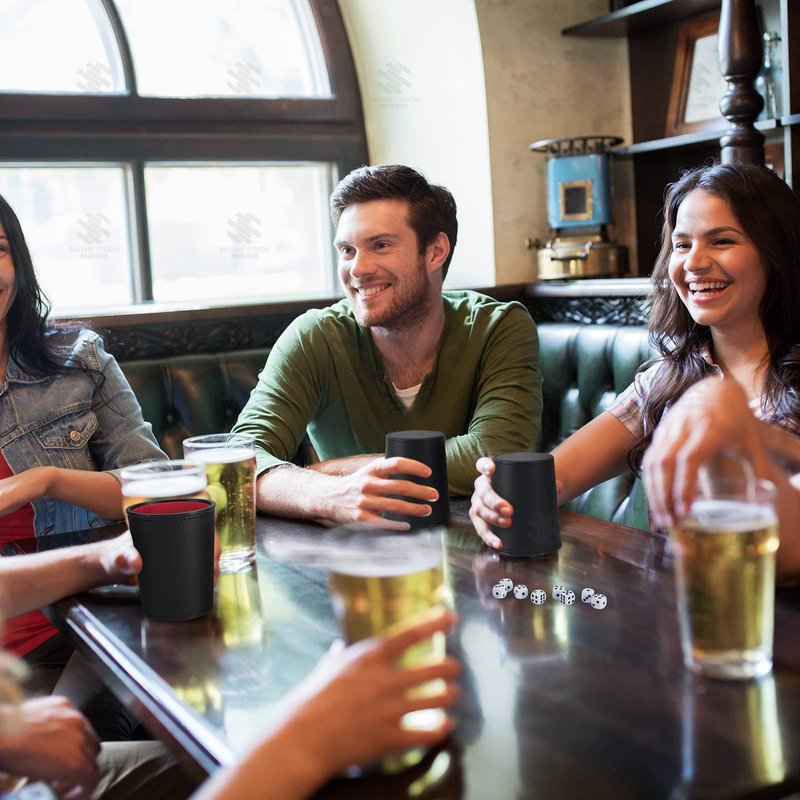- Exclusive storage and transport case made of imitation leather with magnetic closure cube cup is all stored together in one case and easy to find. , dice cup for on the go games travel game dice game, cheer for parties, an excellent choice for entertainment in pubs or local bars.