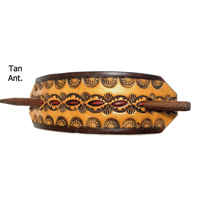 Leather Hair Barrette with Stick…. Unique Design Ponytail Holder for Women….. Hand Tooled Hair Clip….. Choice of 3 Colors #2112