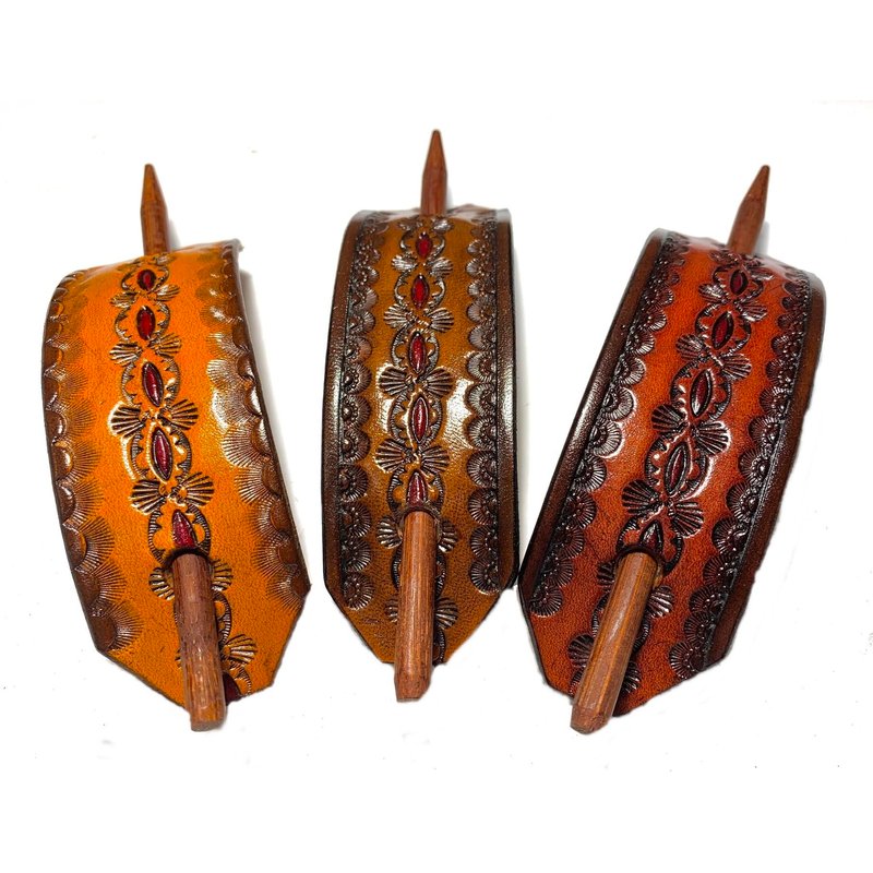 Leather Hair Barrette with Stick…. Unique Design Ponytail Holder for Women….. Hand Tooled Hair Clip….. Choice of 3 Colors #BT 2019