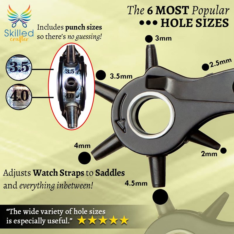 - IT'S SO EASY TO USE!! – The gently cushioned, double-lever handles take the strain out of hole punching. It's your Superhero if you have a weaker grip, and reassuringly comfortable for repetitive craft work. It punches the 6 most popular sizes – 2mm, 2.5mm, 3mm, 3.5mm, 4mm & 4.5mm