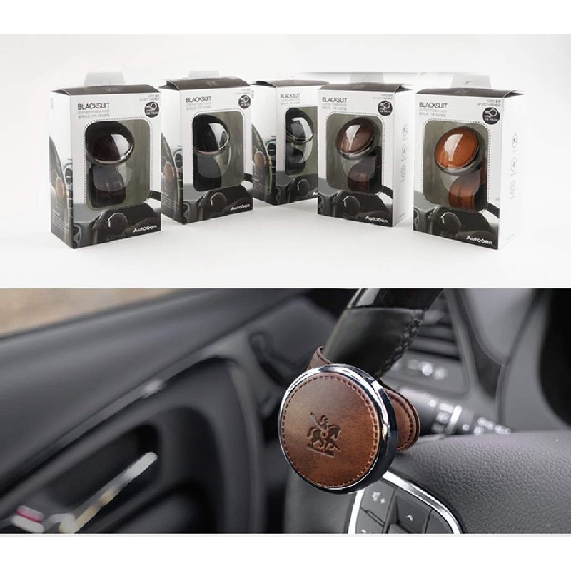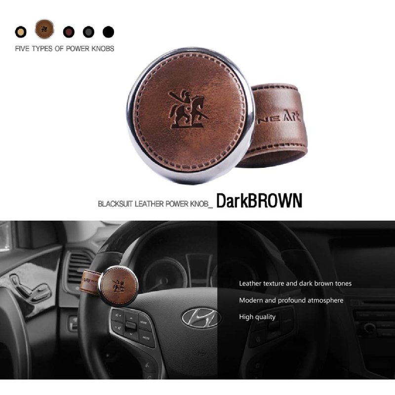 [Leather Power Knob] BLACKSUIT can be mounted on all models Vehicle Handle Spinner Power Handle Spinner Handle Car Accessories luxury Hi-quality Power Handle Steering Wheel Spinner Knob (Dark Brown)