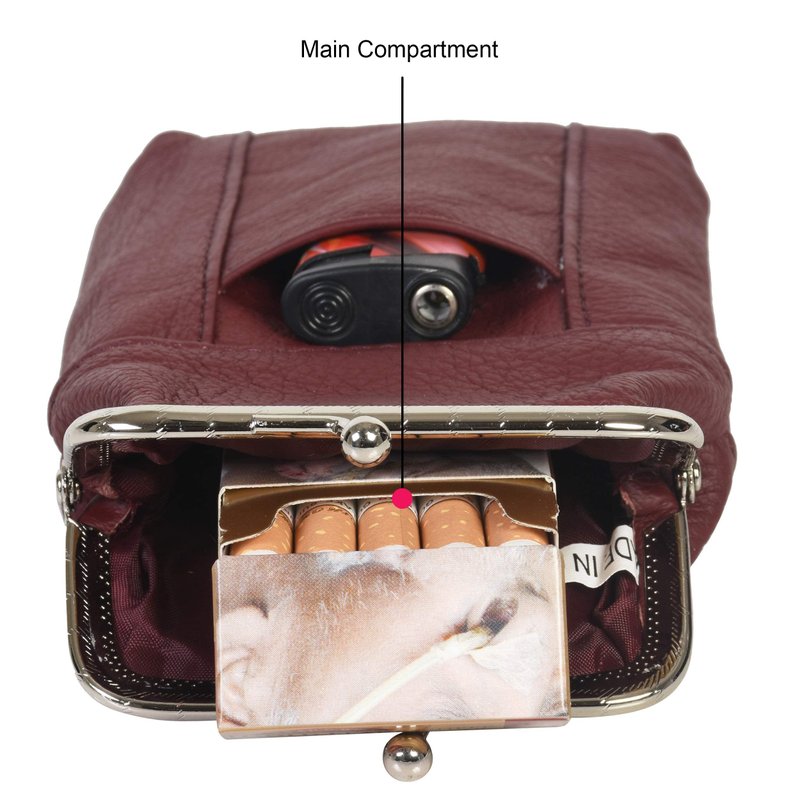 Leatherboss Genuine Leather Cigarette Case Pack Holder Regular or 100's Lighter Pocket, Wine