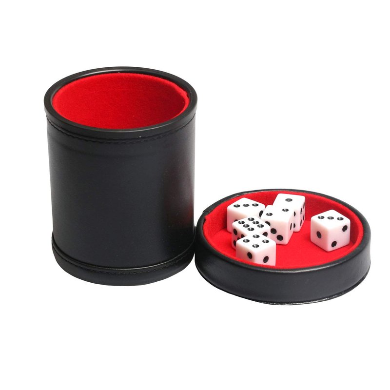 Leatherette Dice Cup with Lid, Includs 16mm Regular Dices, Red Felt Lining Dice Shaker Quiet for Playing Yahtzee/Farkle/Liars Dice/Board Game