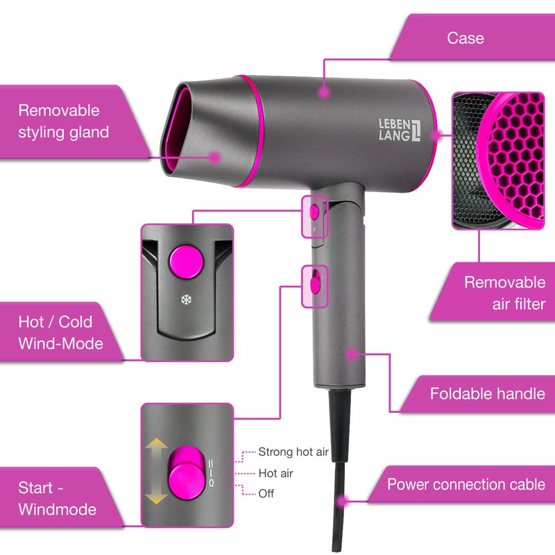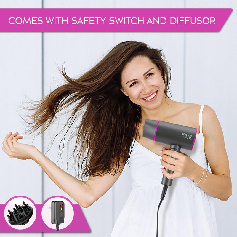 - EFFICIENT AND POWERFUL: LEBENLANG travel diffuser hair dryer; this travel hairdryer delivers a powerful performance with 1875W. The hair diffuser blow dryer is very efficient.