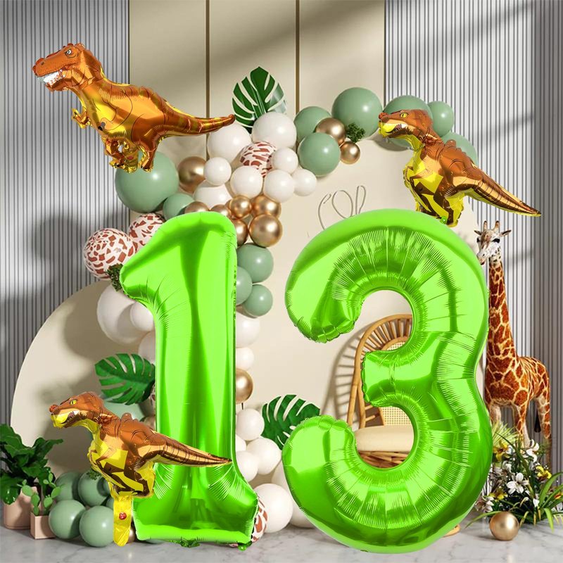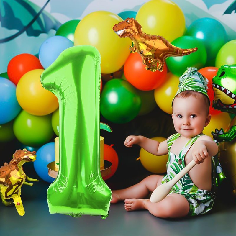 - 【Unique Design】: Our mini dinosaur balloons is lovely and will be very popular in the party. It is a huge size of number balloon and with green color visual effects, which looks good when taking pictures. Make great photo booth props to hold when posing for photos! It is very large, a perfect addition for children's birthday parties, will make the events more charming and impressive, leave memorable time for the guests. Please do not inflate the balloon by more than 90%.