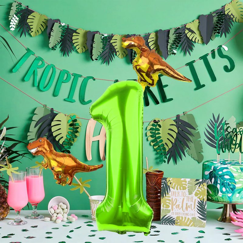 LEBERY Dinosaur Number 1 Ballloon, 40 Inch Green Number 1 Balloon, Mini Dino Foil Balloons Baby Dinosaur Balloons for Kid Dino Theme Jungle Birthday Baby Shower Party Decorations