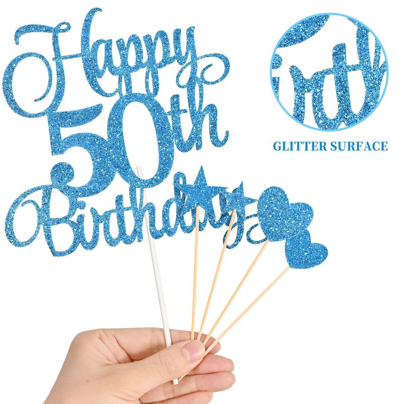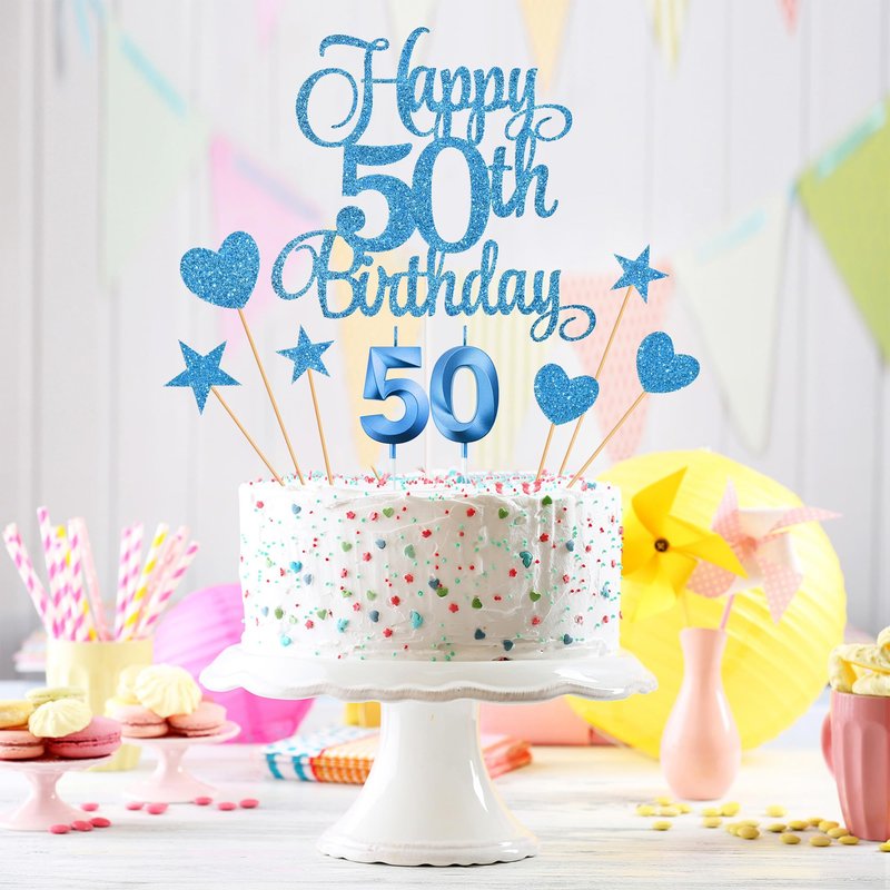 - Package content: you will receive 1 piece happy 50th birthday topper, 3 pieces star cake toppers, 3 pieces heart cake toppers and 2 pieces numeral candles, it's a great addition to the 50th birthday party and anniversary party