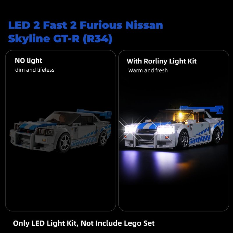 LED Lighting Kit for Lego Speed Champions 2 Fast 2 Furious Nissan Skyline GT-R (R34),Creative Light for Lego 76917 Race Car Toy, A Idea Gift for Kids or Fans (Lights Only, No Lego Models)