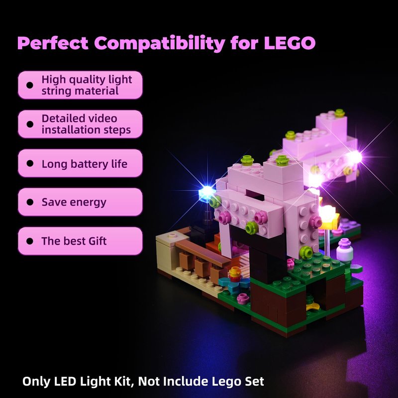 - lluminate Your Lego World - Tailor-made for the Lego The Cherry Blossom Garden, building set, this LED lighting kit breathes life into your Lego 21260 creations with a stunning illuminated display. (Note: Lighting kit only, no Lego model included.)