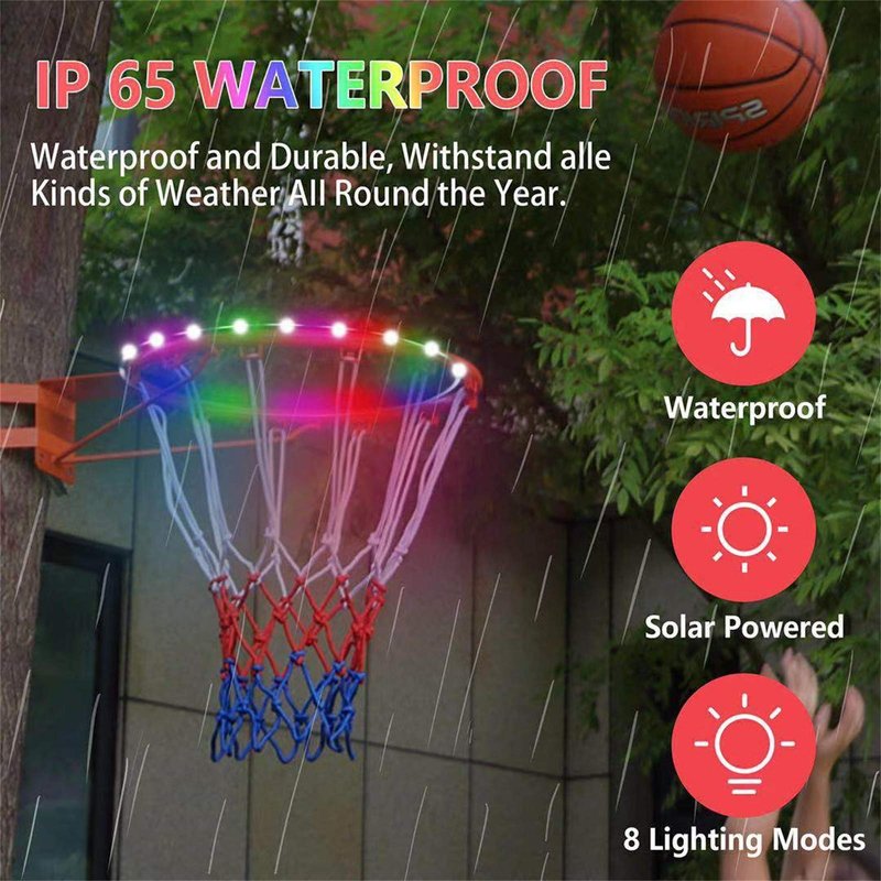 - Waterproof & durable: The LED Light for Basketball Hoop is waterproof so no worries about it staying out in bad weather, Protect against rain,snow etc. Encourages physical activity, amplifies passion for basketball makes playing alone & with friends more fun at dusk or night even more entertaining.