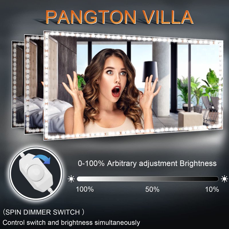 LED Vanity Mirror Lights for Makeup Dressing Table Vanity Set 13ft Flexible LED Light Strip Kit 6000K Daylight White with Dimmer and Power Supply, DIY Mirror, Mirror not Included