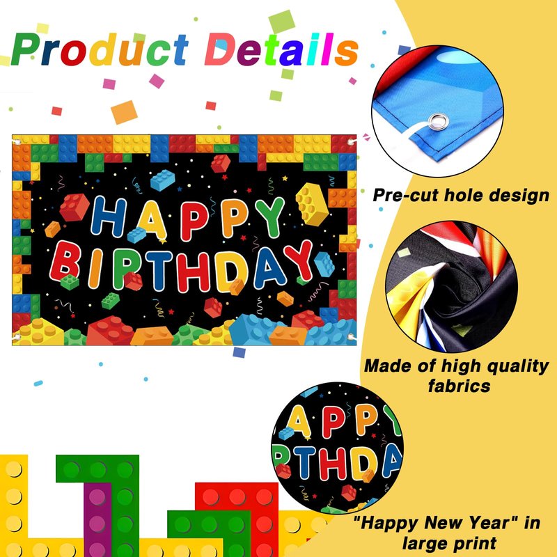 - 🎂【Set Includes】The Building Blocks Birthday Photography Background comes as a complete set, including 1 pack of birthday banners with captivating building blocks patterns and 1 long ribbon. It has everything you need to create a festive atmosphere at your party.