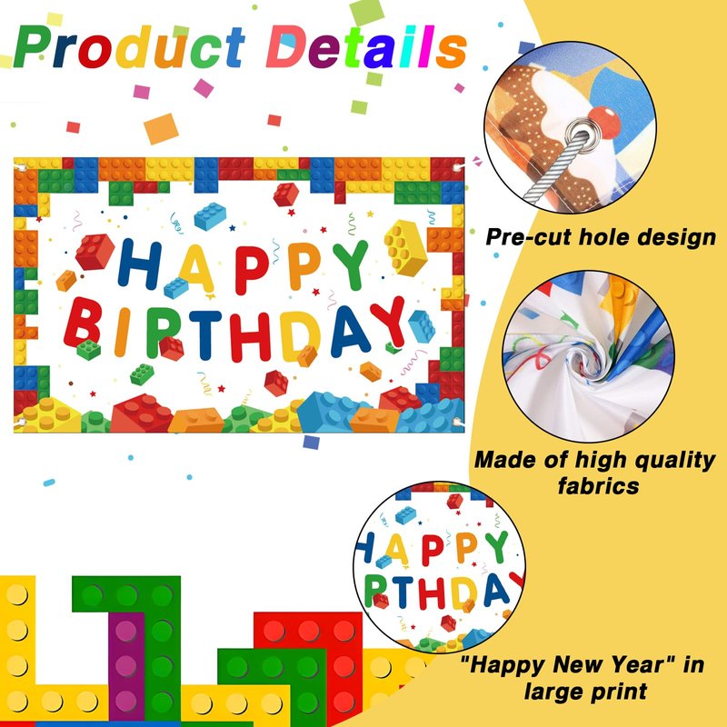 - 🎂【Set Includes】The Building Blocks Birthday Photography Background comes as a complete set, including 1 pack of birthday banners with captivating building blocks patterns and 1 long ribbon. It has everything you need to create a festive atmosphere at your party.