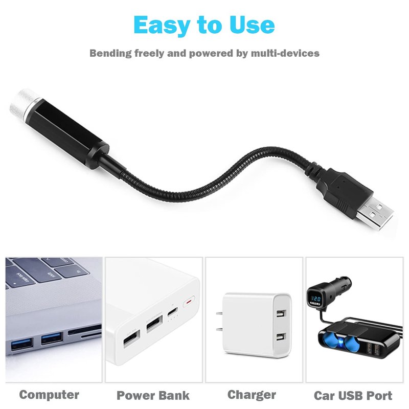 - Easy To Use: With USB interface, just plug this star roof light interior into your car's usb connector, power bank, computer, wall charger or any other usb socket, plug and play. Mini size, easy to carry.