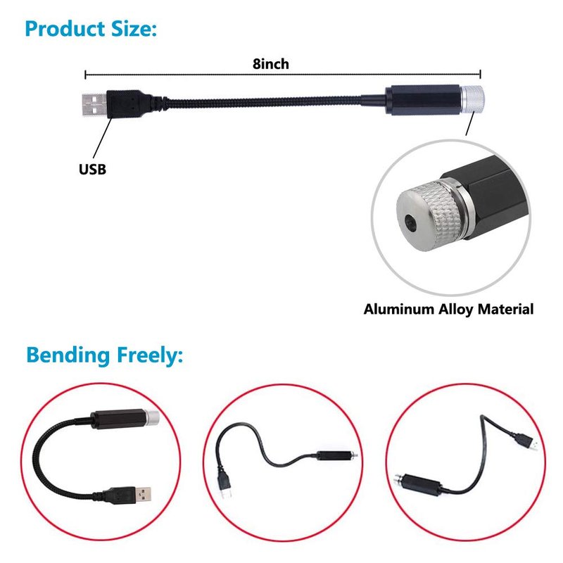 - Bending Freely: The USB Car Roof Star Light features a free-curved design that can be used to adjust any direction of the interior lighting.